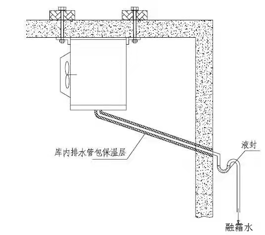 5、在庫外的連接管必須加裝排水存水彎,管內(nèi)保證一定的液封,以防止大量的庫外熱空氣進入冷庫內(nèi);